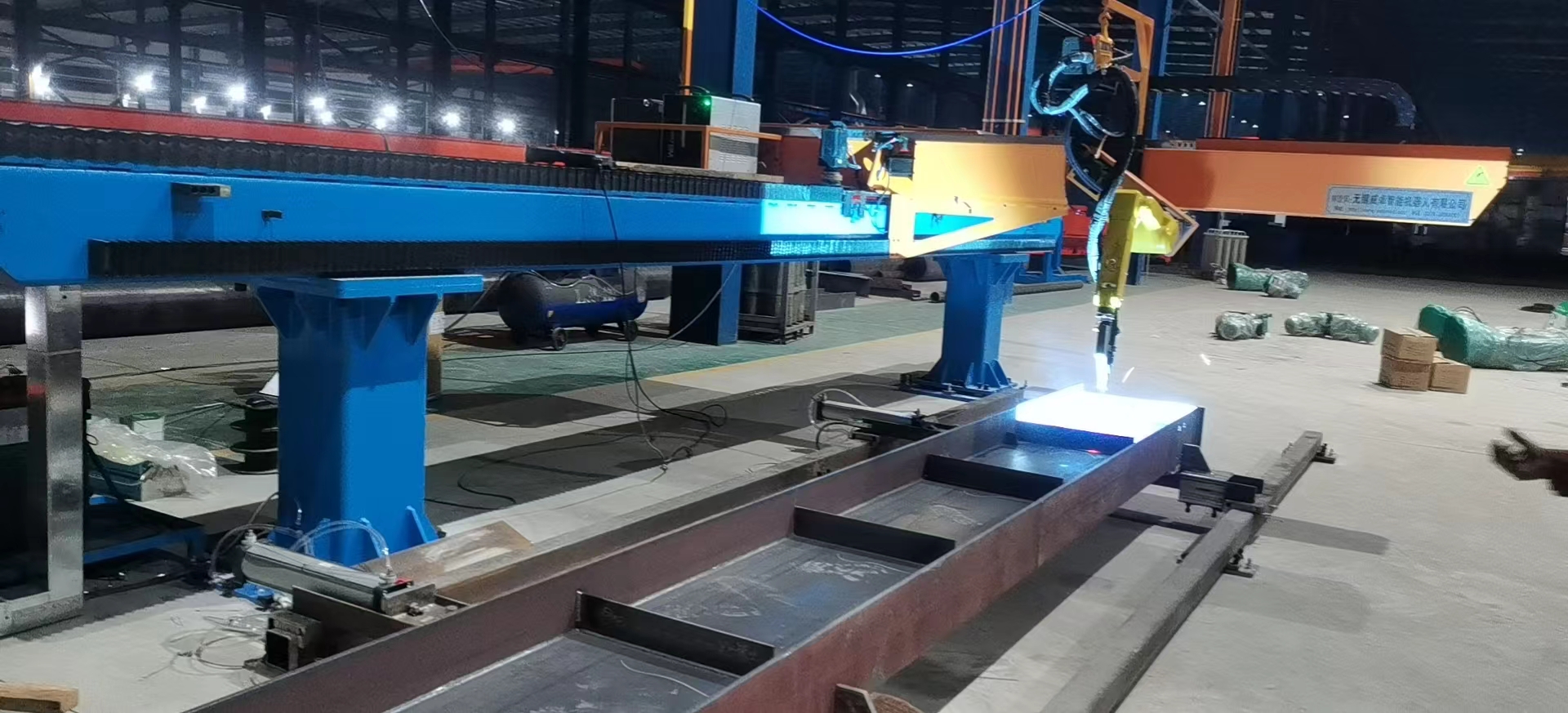 智能焊接在鋼構行業的成功應用針對鋼結構中常見的H型鋼等鋼梁工件,威卓設計研發(fā)了小龍門智能焊接工作站,焊槍部分使用鋼梁專用焊槍,更適用于鋼梁焊接;搭配傳感器使用,自動尋位識別焊縫,無